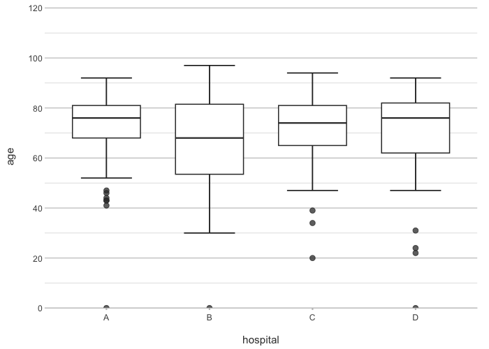#> ℹ Using type = "boxplot" since all groups in hospital contain at least three values
