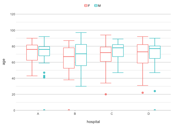 #> ℹ Using type = "boxplot" since all groups in hospital and gender contain at least three values