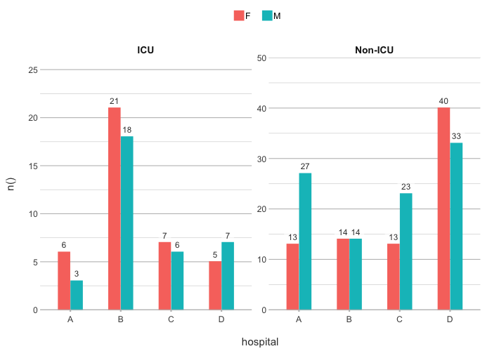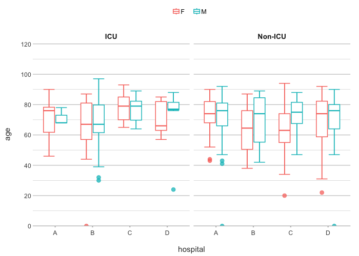 #> ℹ Using type = "boxplot" since all groups in hospital and gender and ward contain at least three values
