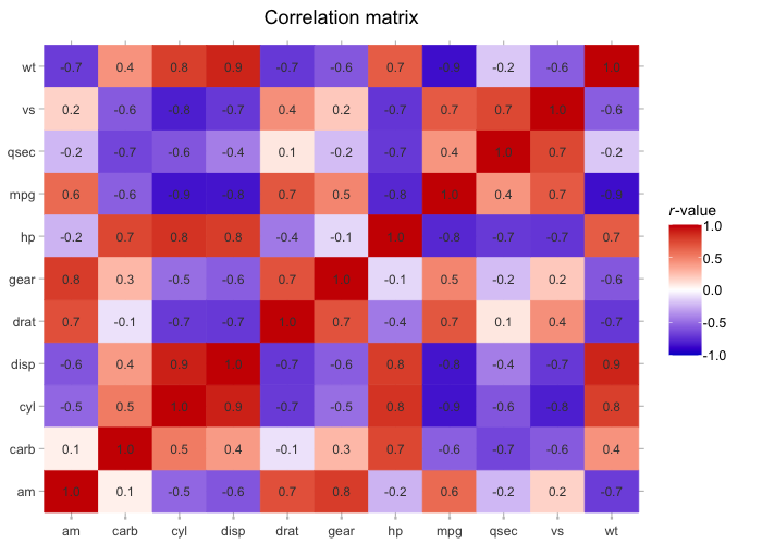#> wt -0.8676594 0.7824958 0.8879799 0.6587479 -0.7124406 1.0000000 -0.17471588 -0.5549157 -0.6924953 -0.5832870 0.4276059