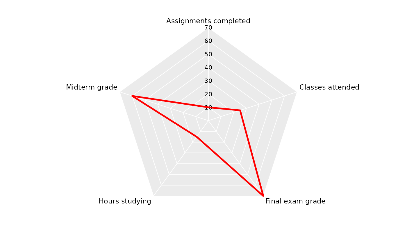 # Spider/Radar plots only require geom_polygon() with coord_spider():