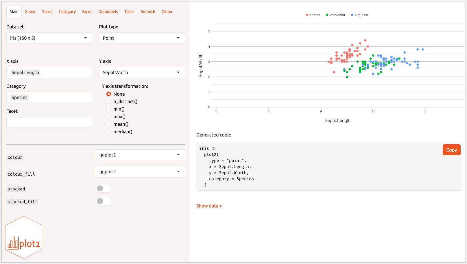 This Shiny app allows for interactive creation of a plot2
